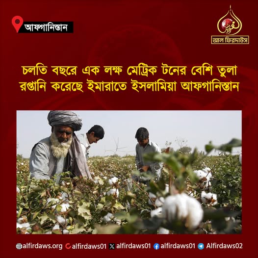 আফগানিস্তানের তুলা খাত আন্তর্জাতিক বাজারে নতুন মাত্রা যোগ করেছে। ইমারাতে ইসলামিয়ার শিল্প ও বাণিজ্য মন্ত্রণালয়ের কর্মকর্তারা জানিয়েছেন, চলতি বছরে দেশটির তুলা রপ্তানি উল্লেখযোগ্য হারে বৃদ্ধি পেয়েছে, যা জাতীয় অর্থনীতির জন্য একটি আশাব্যঞ্জক অগ্রগতি হিসেবে বিবেচিত হচ্ছে।