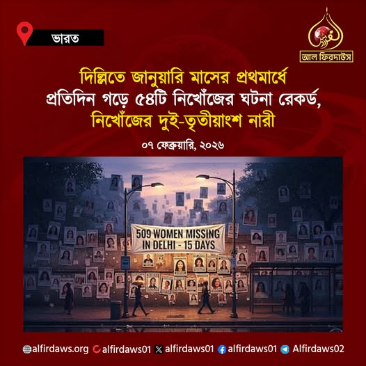 ২০২৬ সালের প্রথম ১৫ দিনে ভারতের রাজধানী দিল্লিতে ৫০০ এরও বেশি নারী নিখোঁজ হয়েছে।