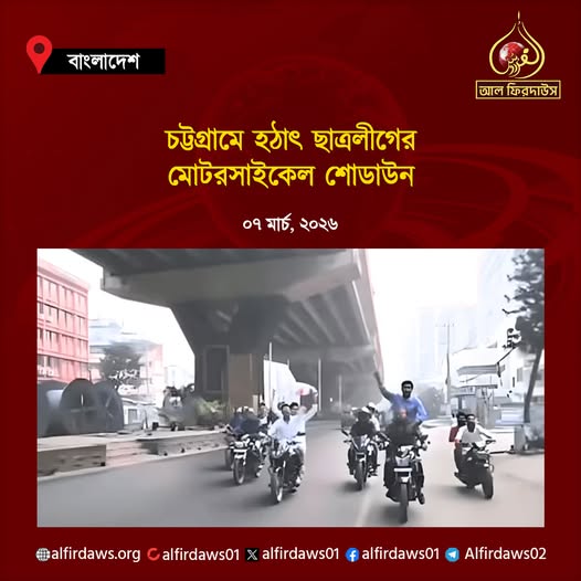 চট্টগ্রামে মোটরসাইকেল শোডাউন করেছে নিষিদ্ধ সংগঠন ছাত্রলীগের কয়েকজন নেতা-কর্মী। দৈনিক ইত্তেফাক জানায়, গত শনিবার (৭ মার্চ) ভোরে নগরের ২ নম্বর গেট এলাকার উড়ালসড়কের নিচে এই শোডাউন করে নিষিদ্ধ ছাত্রলীগ। মিছিলের একটি ভিডিও সামাজিক যোগাযোগমাধ্যমে ছড়িয়ে পড়েছে।