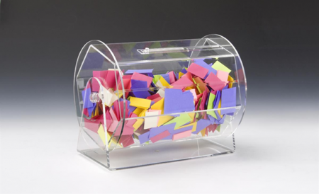৪) পরীক্ষা শুরুর মাত্র দুই ঘন্টা পুর্বে একটি বিশেষ কমিটি কতৃক শিক্ষা বোর্ডের সন্মেলন কক্ষে সকলের সামনে চুড়ান্তভাবে নির্বাচিত প্রশ্নব্যাংক হতে ২০ সেট প্রশ্ন নিয়ে নিন্মের মত স্বচ্ছ একটি মিশ্রন বাক্সে ডেলে এলোমেলো করে সেখান হতে ১০ সেট প্রশ্ন রেনডমলি নির্বাচন করতে হবে । এ পর্যায়েও প্রশ্ন ব্যাংক হতে দৈবক্রমে কোন সেটের প্রশ্ন ফাঁস হলেও কারো তেমন কোন লাভ হবেনা , কারন কেও জানবেনা কোন সেট দিয়ে পরীক্ষা হবে । ১০ টি সেটের যে কোন একটি দিয়ে পরীক্ষা হতে পারে , অতএব কেও যদি ফাঁসকৃত প্রশ্নের প্রেক্ষিতে পরীক্ষা দিতে চায় তাহলে তাকে ১০ টি সেট হতেই ১০০টির মত বিভিন্ন ধরনের প্রশ্নের উপরে প্রস্তুতি নিতে হবে যা দুই ঘন্টার মধ্যে করা সম্ভব হবেনা । তবে এ ক্ষেত্রেও উপরের মত 'উত্তর-পত্র ব্যাংক' সংক্নান্ত বিষয়গুলি মাথায় রাখতে হবে ।