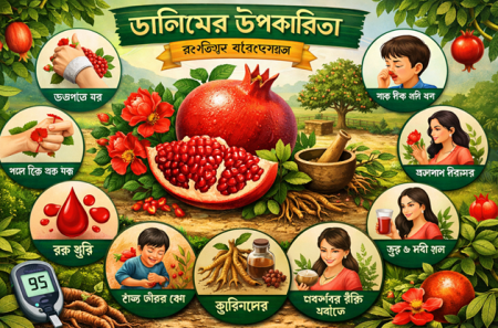 ৮.রক্ত বৃদ্ধি : ডালিম খেলে শরীরে রক্ত বৃদ্ধি পায় বলে ধারণা রয়েছে।