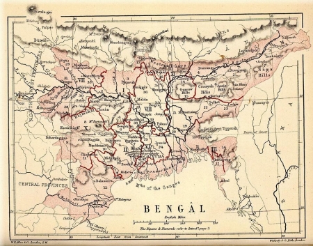 ছবি-১(খ) : পরবর্তীতে বেঙ্গল ১৮৮০ সময়কালের একটি মানচিত্র