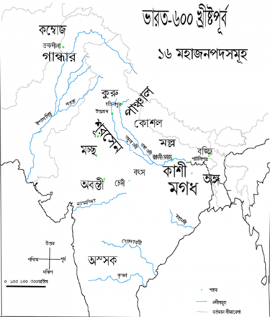 ছবি -২ : অঙ্গ (ষোলটি মহাজনপদ, অঙ্গ তাদের মধ্যে সবচেয়ে পূর্বে অবস্থিত এবং এর অবস্থান বৃজির দক্ষিণে এবং মগধের পূর্বে)