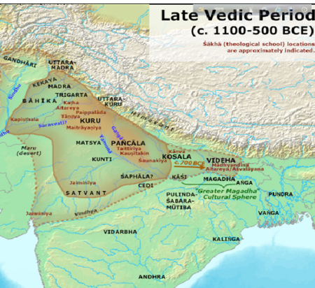 ছবি-১(ক) : আনুমানিক ১১০০ খ্রিস্টপূর্বাব্দ–আনু. ৩৪০ খ্রিস্টপূর্বাব্দ পুন্ড্র ও অন্যান্য রাজ্যগুলির মানচিত্র