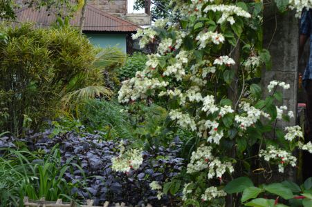 গ্রামের রাস্তার দু’পাশে সারি সারি পাতাবাহার ও ফুল গাছ।
