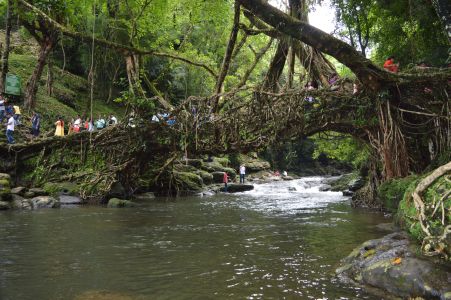 এরপর মাওলিনং গ্রামে দুপুরের খাবার খেয়ে গাড়ীতে উঠলাম। গাড়ী চলতে শুরু করল। খাসী ড্রাইভার মিনিট তিনেক পর হঠাৎ ব্রেক করলেন। ঘাড় ঘুরিয়ে বললেন, Left side, Balancing Rock. গাড়ী থেকে নেমে ১০ রূপির টিকেট দিয়ে Balancing Rock দেখলাম।