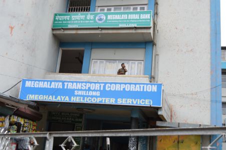 রাস্তার ডানে ঘুরতেই মেঘালয় টান্সপোর্ট র্কপোরেশন ( M. T. C.) বিল্ডিং ।