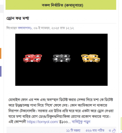 গত বছরের নভেম্বরের ৯ তারিখ সবশেষ কোনো পোস্ট নির্বাচিত করা হয়েছিল। পোস্টটি ছিল বিজ্ঞানমনস্ক ব্লগার কলাবাগান১-এর। পোস্টের শিরোনাম- ড্রোন ফর মশা। এর পর আর কোনো পরিবর্তন নেই।