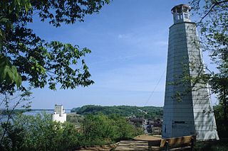 মার্ক টোয়েনের স্মৃতিতে Cardiff Hill এর চুড়ায় তৈরী হওয়া লাইট হাউস থেকে দেখা মিসিসিপি নদী।