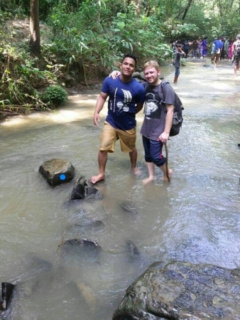উঠতে উঠতে হাঁপিয়ে গেছি। বসলাম কিছুক্ষণ। তারপর পরবর্তী ঝর্ণায় নামলাম। এখানে কিছুক্ষণ ছবি টবি তোলা হল। খাবার খেতে গিয়ে দেখি খাবার উপরে তোলা হয়নি। ভাগ্যিস আমার ব্যাগে পিয়াজু আর কলা ছিল। তাই-ই সই। শুভ ভাই দেখি কলা দিয়ে পিয়াজু খাওয়া শুরু করে দিছে। ইতিমধ্যে একটা বাচ্চা দৌড়ে নেমে খাবার নিয়ে আসছে। যেই পথ উঠতে আমাদের কিয়ামত হয়ে গেছে সেই পথ এরা দৌড়ে উঠে, দৌড়ে নামে।