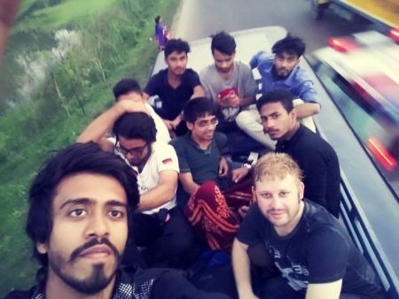 লাফ দিয়ে উঠে গোসল টোসল ছেড়ে রেডি হয়ে গেলাম। ততক্ষণে সাইমন ভাই বের হয়ে গেছে। আমি আর শুভ ভাই বের হলাম তারপর। হলিক্রিসেন্ট এসে দেখি রাহুল ভাইরা সবাই অপেক্ষা করছে। নতুন কয়েকজনের সাথে পরিচয় হলো। নিশান ভাই, রাসেল ভাই, রনি দা। আরেকজনের নাম ভুলে গেছি। এদিকে এখনো আশিক ভাই আসতে পারেনি। আশিক ভাই আসার পর সবাই তাড়াহুড়া করে চার নাম্বার বাসে উঠে পড়লাম। চার নাম্বার বাসে করে অলংকার। তারপর ফেনীর বাস ধরতে হবে। অলংকার নামার পর আর গাড়ি পাই না। সব গাড়ি ফুল। নতুন গাড়ি ভরতে দেরি হবে। ভেবেচিন্তে দাঁড়িয়ে দাঁড়িয়ে যাবার সিদ্ধান্ত হলো। বাসওয়ালা বললো, সীতাকুণ্ড গিয়ে বসতে পারবেন। সীতাকুণ্ড গিয়ে বসার আশায় বাসে উঠে পড়লাম। রড ধরে দাঁড়িয়ে এটা ওটা নিয়ে ফাজলামি করতে করতে চলেছি। কিছুক্ষন বাস সহকারীর সাথে ফাইজলামি,কিছুক্ষণ যাত্রীদের সাথে, এইভাবে চলছে। সীতাকুণ্ড গিয়ে বসার জায়গা হলো। তারপর শুরু হল নতুন মাত্রার ফাইজলামি। রাস্তায় দাঁড়িয়ে আছে, কোনটা কেমন, এইসব।