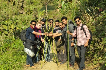 বাঁশে ভর দিয়ে দিয়ে আস্তে আস্তে উপরের দিকে উঠছি সবাই । ব্যাগ এক ভারি, তার উপরে মোটাসোটা শরীর । একেবারে খাড়া ট্র্যাকিং । অবস্থা একেবারে কাহিল । বিশ-পঁচিশ মিনিট মত উঠার পর সবাই আধামরা অবস্থা । পিপাসায় বুকের ছাতি ফেটে যাওয়ার জোগাড় । খাপকুম বললো, থামেন এখন । পানি টানি খান ।