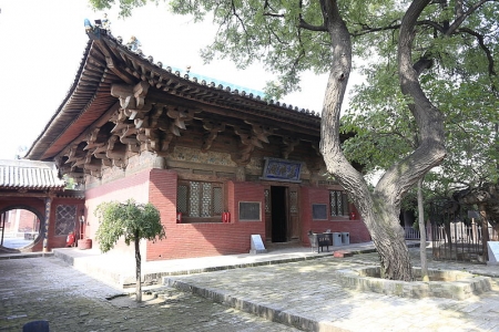 জেনগুয়ো মন্দিরের ওয়াংফো হল। ছাদটি টালিকৃত ছোট ছোট ড্রাগনে সুসজ্জিত। দরজাটি ইট নির্মিত চত্বরের দিকে উন্মুক্ত।