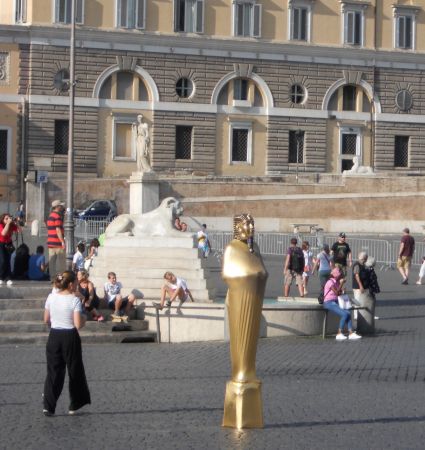 ) এর স্ট্যাচু, পিছনে নকল স্ফিংস।