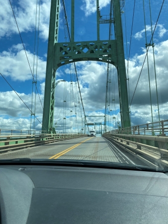 ইউএস বর্ডার ছুয়ে রাস্তা ও ব্রিজ দিয়েই যেতে হয় সেখানে। দারুন প্রাকৃতিক দৃশ্য আর ব্রিজ মিলিয়ে অসাধারন কিছু। কিন্তু বাদ সাধলো এ্যালিসাকে নিয়ে। ব্রিজে উঠতেই টোল দিতে হয় ৫ ডলার। এ্যালিসাতো রীতিমত জেরা, কেন আমি টোল দিবো? এটা সরকারী রাস্তা ও আমি ট্যাক্স দেই। আমার অধিকার আছে এটা দিয়ে হাটার। সেখানে কেন আমি পে করবো....।