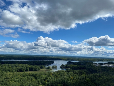 1000 Islands Tower বর্ডার ঘেষে প্রায় ১৩০ মিটার উঁচু ওয়াচ টাওয়ার। এক নজরে পুরো আইল্যান্ড দেখার জন্য দারুন জায়গা। উপরের ছবির নীচেরটি ইউএস বর্ডারের দৃশ্য। লিফটে করে ৩০ সেকেন্ডে নিয়ে গেল আমাদের শেষ তিন ফ্লোরের আগেই। বাকিটুকু হেটেই উপরে গেলাম। অসম্ভব সুন্দর চারপাশ। এখানে না আসলে মিস হতো বিশেষ কিছু। টাওয়ার ঘুরে নীচের স্যুভেনিরের দোকান। দাম যা দেখলাম হার্টফেল করার অবস্থা। তাই না কিনেই ভাগলাম।