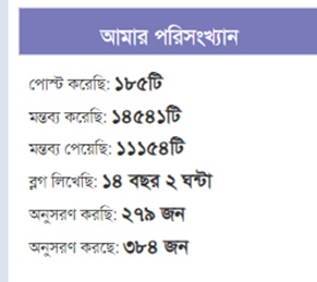 মুজাহিদুর রহমান বলেছেন: আমি একেবারেই নির্লজ্জ বলে আমার পরিসংখ্যান শেয়ার করতে পারলাম।