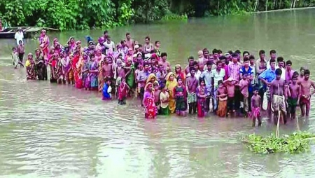"বন্যায় ক্ষতিগ্রস্ত অর্ধকোটির বেশি: ত্রাণ নিয়ে অভিযোগ।" খবর বিবিসির।
