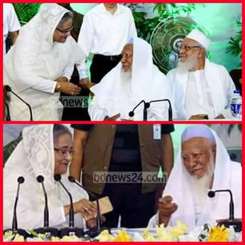 এ কী দেখলাম আমরা? আল্লামা শফি সাহেবের পাশে হাস্যোজ্জ্বল প্রধানমন্ত্রী শেখ হাসিনা। এই শেখ হাসিনার সরকারের সময় নাস্তিকতা বিরোধী আন্দোলন করতে গিয়েই আমরা জানতে পারি 'হেফাজতে ইসলাম' নামে কোন একটা অরাজনৈতিক ইসলামী সংগঠন আছে। তারা আবার দাবি করে কোন দলের ক্ষমতায় যাওয়ার বা পতনের সিঁড়ি তারা হবেন না। খুবই ভালো কথা। আপনাদের ছাড়াই বি এন পি বা আওয়ামী লীগ ক্ষমতায় আসে বা যায়।