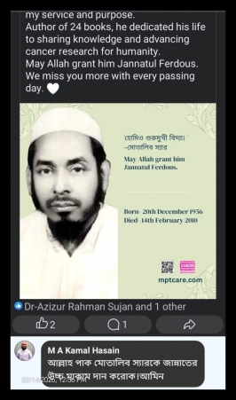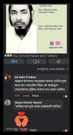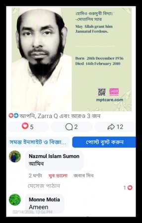 আজ ১৪ ফেব্রুয়ারি — আমার প্রিয় বাবা, ডাঃ মোতালিব মিয়া, যাঁর শিক্ষা ও প্রেরণা আজও আমার জীবনের পথ প্রদর্শক।