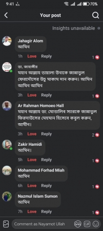 হে আল্লাহ, তাঁকে জান্নাতুল ফেরদৌস দান করুন। আমরা প্রতিদিনই আপনাকে আরও বেশি মনে করি।