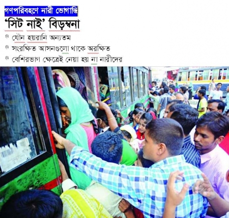 দেশের প্রায় প্রতিটি গণপরিবহণেই প্রতিনিয়তই ভোগান্তি ও হয়রানির শিকার হচ্ছেন নারীরা। সরকারি আদেশ অনুযায়ী প্রত্যেকটি সরকারি ও বেসরকারি বাসেই তাদের জন্য সংরক্ষিত আসন থাকলেও তা শুধু মাত্র নামেই 'সংরক্ষিত'। বেশিরভাগ সময়েই এই সংরক্ষিত আসনগুলো নারীদের দখলে না থেকে পুরুষের সংরক্ষনেই থাকে। দেশের প্রতিটি গণপরিবহণেই নারী-শিশু-প্রতিবন্ধীদের জন্য মাত্র নয়টি সিট বরাদ্দ থাকার কথা থাকলেও তা বেশিরভাগ ক্ষেত্রে তিন থেকে চার সিটের মধ্যেই সীমাবদ্ধ। সেই তিন-চারটি আসনও কান্ডজ্ঞানহীন পুরুষ যাত্রীদের দখলেই থাকে। সংরক্ষিত আসন উদ্ধার করতে গিয়ে পুরুষ যাত্রীদের বিরূপ আচরণে নারীদের পড়তে হয় অস্বস্তিতে। আবার, 'সিট নেই' বিরম্বনা তো রয়েছেই। অনেক সময় পরিবহনে চাপ বেশি থাকলে তখন বহু বেসরকারি বাসে নারীদের সংরক্ষিত আসনে পুরুষ যাত্রীদের বসিয়ে 'সিট নেই' বলে নারীদের উঠতে দেয়া হয় না। এমনকি সংরক্ষিত নয়টি আসন ছাড়া অন্য আসনে বসলে পুরুষ যাত্রীরা শুরু করেন তর্কবিতর্ক। যানবাহনে ওঠার ক্ষেত্রে নারী শিশুদের অগ্রাধিকার দেয়ার কথা থাকলেও বাস্তবে তা একেবারেই বিলুপ্ত। আবার, এই সংরক্ষিত আসন শুধুমাত্র রাজধানি ঢাকার ভিতরেই রয়েছে। ঢাকার বাইরে এ ধরনের কোনো ব্যবস্থাই নেই।