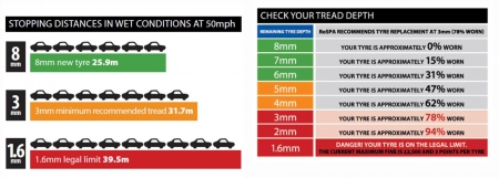 ২। টায়ার গ্রিপের পুরুত্ব বা থ্রেড ডেপথ। অর্থাৎ টায়ার ক্ষয় দেখা হয়। ব্রেক সিস্টেম ঠিক থাকলেও শুধু টায়ার গ্রিপ সঠিক মানে পুরো না থাকায় বা টায়ার ক্ষয়ে যাবার কারণে একটা গাড়ির নিরাপদ ব্রেকিং দুরুত্ব কমে আসে।