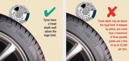 পার্শ্বদেশ থেকে থ্রেড ডেপথ দেখা গেলেও উপরি তলের থ্রেড গ্রীপ ক্ষয়ে গেলে টায়ার পরিবর্তন করতে হয়।