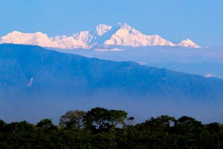 উঁকি দিচ্ছে কাঞ্চনজঙ্ঘা । পঞ্চগড়ের তেতুঁলিয়া থেকে এইভাবেই প্রতিবছর উঁকি দেয় কাঞ্চনজঙ্ঘা ।