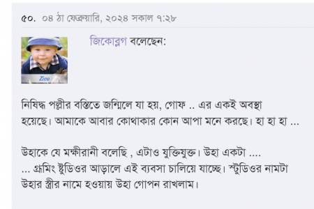 ভাবছিলাম বিষয়টা ইগনোর করব। এসব ক্লাস্ লেস নোংরা মাল্টিদের পাত্তা দেয়া তাদের নিয়ে পোস্ট দেয়া খুবই অপমানজনক। কিন্ত এ প্রতিনিয়ত ব্যাক্তি আক্রমণ কারী এর করা একটা মন্তব্য এতই আপত্তিকর যে কর্তৃপক্ষ বরাবর অভিযোগ না করে পারলাম না।