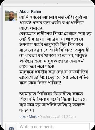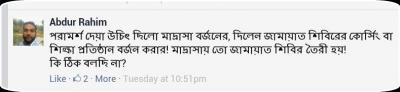 পরামর্শ দেয়া উচিৎ ছিলো মাদ্রাসা বর্জনের, দিলেন জামায়াত শিবিরের কোর্সিং বা শিক্ষা প্রতিষ্ঠান বর্জন করার! মাদ্রাসায় তো জামায়াত শিবির তৈরী হয়!