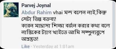 কারন মাদ্রাসা শিক্ষা বর্জন করার কথা বলে নাস্তিকের ট্যাগ খাইতে আমি সম্পুন্যরুপে অপ্রস্তুত! ![]()