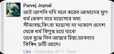 ভাই আপনি যদি মনে করেন আমাদের মুল ধর্ম কেবল মাত্র মাদ্রাসার মধ্য সীমাবদ্ধ,কিংবা মাদ্রাসা না থাকলে এদেশ থেকে ধর্ম বিলুপ্ত হয়ে যাবে!