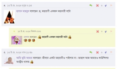 বোকা মানুষ বলতে চায় বলেছেন: সবাই মহারানী'র ফ্যান, এমন কি লেখক নিজেও। কিন্তু 'বেচারা'র প্রতি নির্দয়, চরিত্রটার একটা অফিসিয়াল নাম পর্যন্ত দেয়া হল না । ![]()