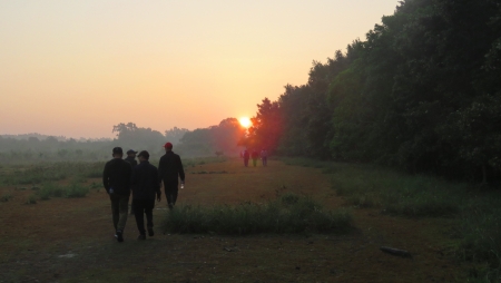 সূর্যোদয় এর মুহুর্তে কটকা'র পথ ধরে জামতলা সৈকত এর দিকে ছুটে চলছে আমাদের ভ্রমণদল