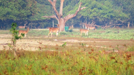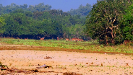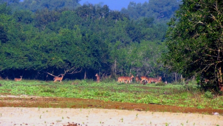 প্রায় এক কিলোমিটার দূর থেকে জুম করে তুলতে পেরেছিলাম জামতলা সৈকতে হতে ফেরার সময় কটকা বনের তৃণভূমিতে ঘাস খেতে আসা হরিণ এর দলের।