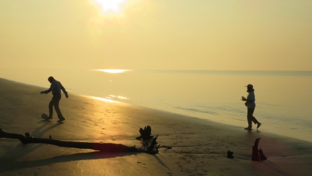 মধ্যবয়সী কিশোরের দলের ফুটবল নিয়ে মাতামাতি সৈকতের সিক্ত বালুকাবেলায়
