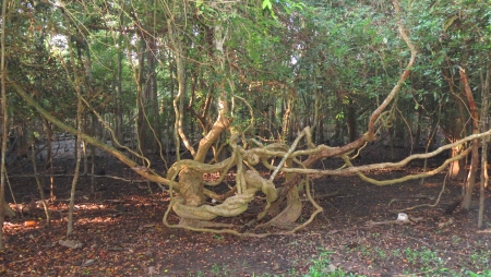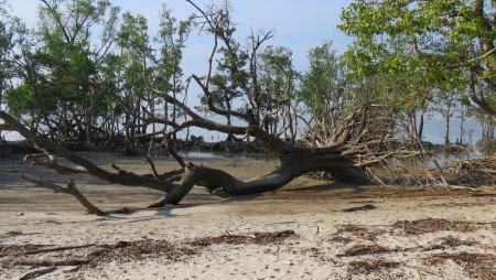 কটকার ম্যানগ্রোভ বন, সাথে ঝড়ে ভেঙ্গে পড়া গাছের অবশিষ্টাংশ