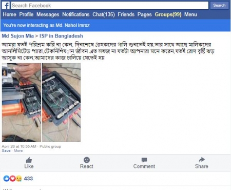 “আমরা যতই পরিশ্রম করি না কেন, দিনশেষে গ্রাহকদের গালি শুনতেই হয়,তার সাথে আছে মালিকদের আনলিমিটেড প্যারা,টেকনিশিয়ান জীবন এত সহজ না যতটা আপনারা মনে করেন,যতই রোদ বৃষ্টি ঝড় আসুক না কেন,আমাদের কাজ চালিয়ে যেতেই হয়।” এমনটি বলেছেন একজন ইন্টারনেট সার্ভিস প্রভাইটর এর কোন এক স্টাফ। তারাও এক প্রকার শ্রমিক। তাই নয় কি? তারা আছে বলেই আমারা খাটের নিয়ে এসি/ফ্যান চালিয়ে আমরা ইউটুবে গান শুনি।