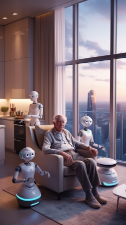 আমার এখন শরীলে শক্তি আছে। তাই নিজের অনেক কাজ নিজেই করি। যদিও অনেক কাজ মেশিনে হয়। কাপড় দৌত করার জন্য ওয়াশিং মেশিন। বাসায় খাবার না থাকলে, ঘরে বসে খাবার অর্ডার করা যায়। এই বয়সে অসুখ হলে কেয়ার করি না। একটা সময় হয়তো আসবে যখন হয়তো রোবট এর সাহায্য লাগবে। অসুখ হলে সেবা করবে। রোবট খাবার পরিবেশন করবে। পানি চাইলে রোবট পানি এনে দিবে। কলিন বেইল টিপ দিলে রোবট দরজা খুলবে।