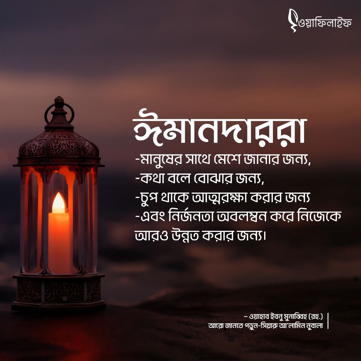 জেনে রাখা দরকার যে, আলোক থাকলে আমাদের চক্ষু দেখতে পায়। বুদ্ধি থাকলে জ্ঞানলাভ করতে পারা যায়। এবং প্রকৃত ইসলামের সঠিক অনুগামী হতে পরলে সৃষ্টিকর্তা আল্লাহর সন্তুষ্টিলাভ করা যায়। কিন্তু প্রকৃত ইসলামের আওতার বাইরে কর্ম সম্পাদন করলে আল্লাহর সন্তুষ্টিলাভ করা যায় না। মুসলিম জাতি যখন পবিত্র কুরআন এবং সঠিক হাদীসের আলোকে জীবন যাপন করতে পারবে, তখন সে আনন্দময় জীবনলাভ করতে সক্ষম হবে এবং পৃথিবীর মানুষকে সুখদায়ক ধর্ম ইসলামের পথ প্রদর্শন করতে পারবে।