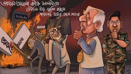 সংঘবদ্ধ মবতন্ত্রকারীরা রাজধানীর কারওয়ান বাজারে প্রথম আলো ভবন ঘেরাও করে ব্যাপক ভাঙচুর ও লুটপাট চালায়। পরে ভবনে আগুন লাগিয়ে দেয় তারা। বৃহস্পতিবার দিবাগত রাত দেড়টায়।