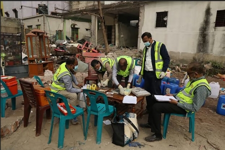 ঘটনাস্থলে বোমা নিষ্ক্রিয়কারী দল ও ক্রাইম সিন দল কাজ করছে। ঢাকার দক্ষিণ কেরানীগঞ্জের হাসনাবাদ এলাকায়।