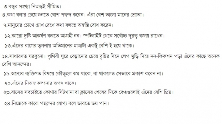 ১৮.মানুষের অঙ্গভঙ্গি বা বডি ল্যাংগুয়েজ সাধারণত এক্সট্রোভার্টদের তুলনায় বেশি বিশ্লেষণের ক্ষমতা রাখেন।
