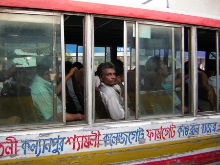 পাশের সিটে আধা পাকা খোঁচা খোঁচা দাড়ি নিয়ে মধ্যবয়স্ক লোকটি ঘুমুচ্ছে। তার পিছনের সিটের লোকটি ঘাড়ের পিছনদিকে সিটের উপর দিয়ে হাত তুলে মুঠ দিয়ে রেখেছে; আঙ্গুলগুলো খোঁচা লাগছে মাথায়। ওদের কারও কোনো চিন্তাই সে জানে না।