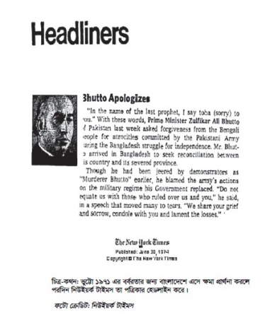 ভুট্টো যা চেয়েছিলেন, অবশেষে তিনি তা-ই পেয়েছেন। সমস্ত যুদ্ধবন্দিকে তিনি ফেরত নিয়েছেন। ভারতের অসন্তুষ্টির মুখে বাংলাদেশকে টেনে নিয়ে গেছেন ইসলামী শীর্ষ সম্মেলনে। নিজের ইচ্ছানুযায়ী সময়ে বাংলাদেশকে স্বীকৃতি দিয়েছেন। কোনো আপস না করে যুদ্ধাপরাধীদের বিচার বাতিল করেছেন এবং সর্বশেষে বিচার বাতিলের সঙ্গে দরদাম করে বাংলাদেশকে স্বীকৃতি দিয়েছেন। সর্বোপরি, ‘পাকিস্তানের প্রতি আনুগত্য প্রদর্শনকারী অবাঙালিদের দায়ভারও তিনি বহন করেননি।