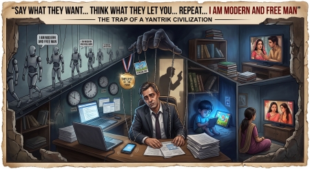 অন্যদিকে, অবসরের নাম করে পরিবারে ঢুকে পড়েছে ভিনদেশি সিরিয়াল আর অসুস্থ বিনোদন। শিশুরা সেখান থেকে শিখছে কুটনামি, মিথ্যে আর কৃত্রিমতা। আমাদের প্রতিটি মুহূর্ত এমনভাবে ব্যস্ত রাখা হয়েছে যাতে আমরা নিজেদের জীবন, ভবিষ্যৎ পরিকল্পনা কিংবা আধ্যাত্মিক বিকাশ নিয়ে ভাবার সামান্যতম ফুরসত না পাই।এই যে আমাদের পরিবার থেকে বিচ্ছিন্ন করে ফেলা, শিশুদের মস্তিষ্কের বিকাশ রুদ্ধ করা এবং আমাদের কেবল 'ভোক্তা' হিসেবে গড়ে তোলা—এসবই এক সুপরিকল্পিত ষড়যন্ত্র। কারণ যারা গভীরভাবে চিন্তা করতে পারে না, তাদের নিয়ন্ত্রণ করা সহজ। তারা হবে মেরুদণ্ডহীন এক জেনারেশন, যারা কেবল অন্যের নির্দেশে চলবে। মিডিয়া আর কর্পোরেট জগত আমাদের এক অদ্ভুত মায়ার জগতে আবিষ্ট করে রেখেছে, যেখানে আমরা বিশ্বাস করি—এটাই স্বাভাবিক জীবন।
