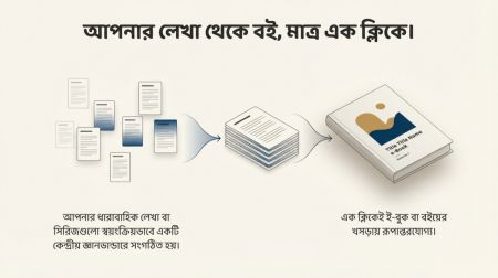৪. স্বয়ংক্রিয় বই প্রকাশের সুযোগ: আপনার ধারাবাহিক লেখা, সিরিজ বা টিউটোরিয়ালগুলো অটোমেটিকভাবে একটি কেন্দ্রীয় জ্ঞানভান্ডারে সংগঠিত হয়, এবং 'এক ক্লিকেই স্বয়ংক্রিয় ই-বুক বা বইয়ের খসড়ায় রূপান্তরযোগ্য'।