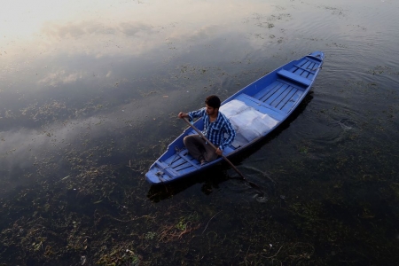 টলটলে পানির নীচে ভারতের বিষাক্ত শৈবাল আর উপরে ভাসমান রঙিন কাশ্মির