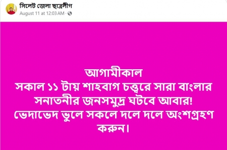 সংখ্যালঘুদের ব্যানারে ছাত্রলীগ, ভালো করে বললে আওয়ামী লীগ শাহবাগের আন্দোলনে পেরে উঠতে না পেরে শাহবাগ চত্ত্বর খালি করে দেয় ।